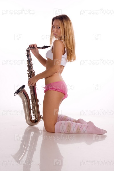 Портрет красивой девушки с саксофоном