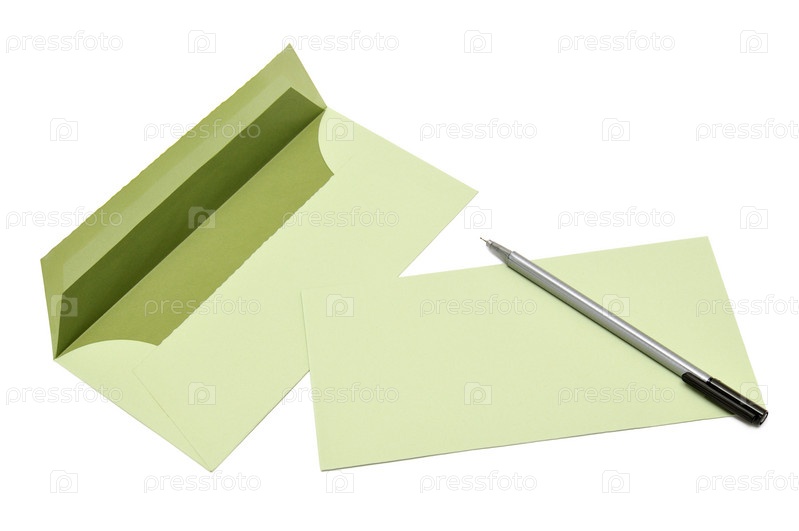 Ручка и конверт, изолированные на белом