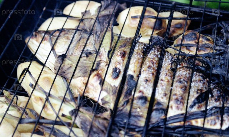 Запеченная рыба с картошкой на решетке