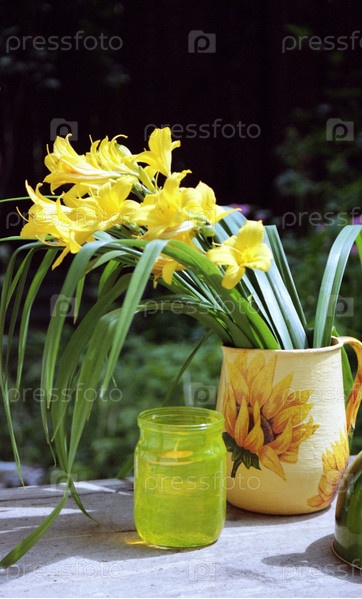 Ваза с желтыми лилейниками и свечой