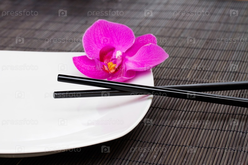 Азиатская еда - пустая тарелка с палочками