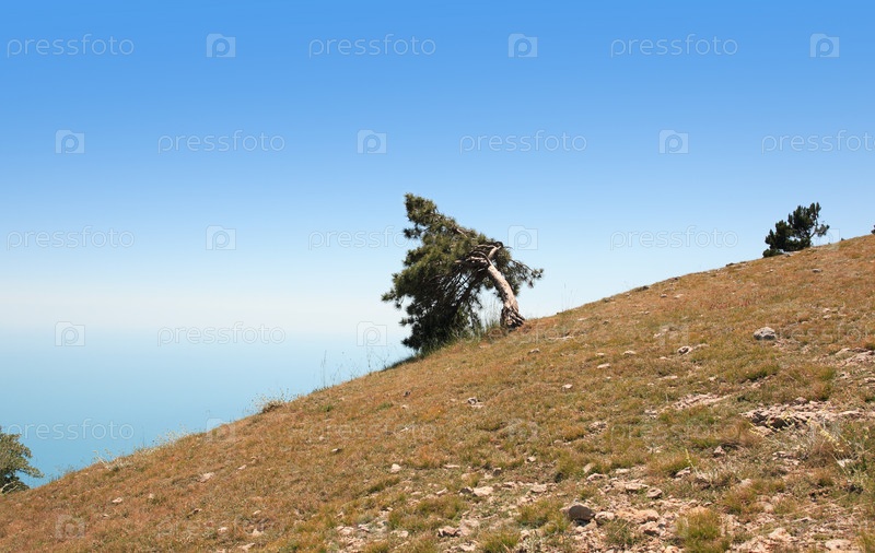 Кривые сосны на склоне горы