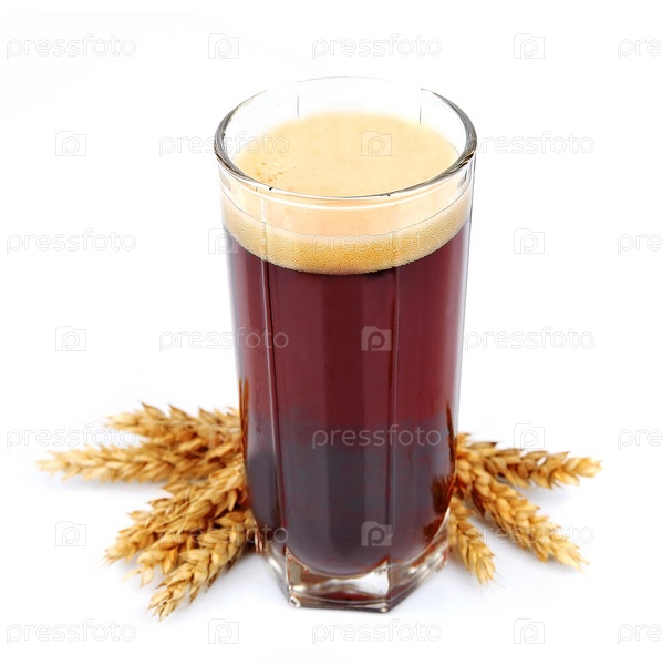 Стакан кваса с пшеницей, изолированные на белом фоне