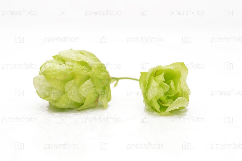 Шишки хмеля на белом фоне крупным планом