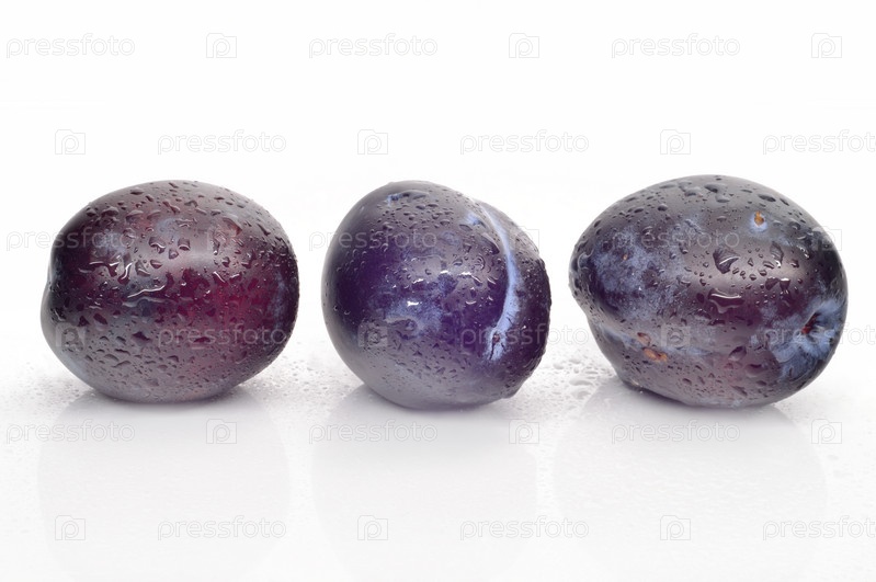Сочные черные сливы крупным планом на белом фоне