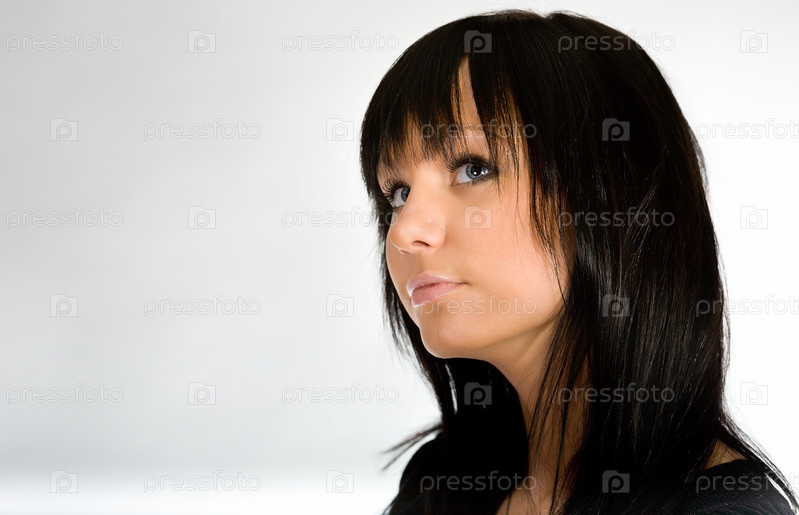 Красивая девушка с темными волосами в черном платье