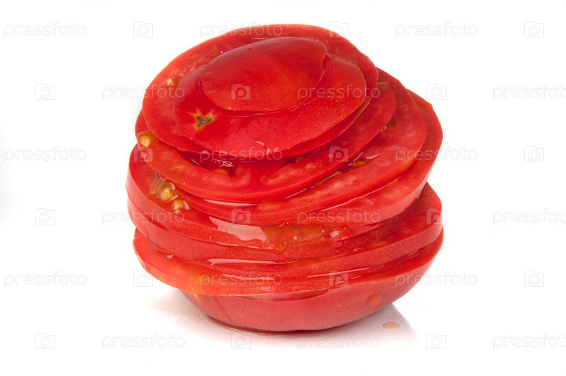 Нарезанные помидоры на белом фоне