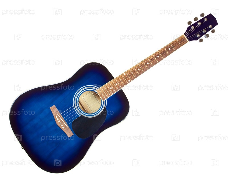 Синяя классическая акустическая гитара, изолированная на белом