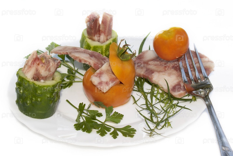 Креативное ресторанное блюдо из мяса и свежих овощей