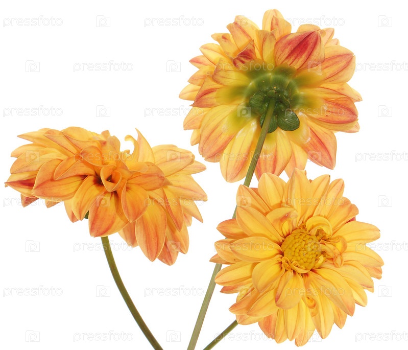 Декоративные желтые георгины на белом фоне