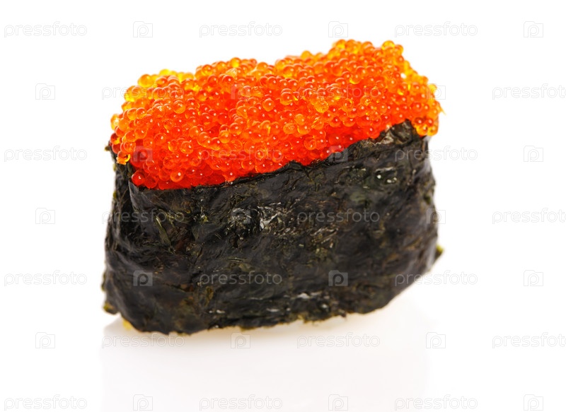 Суши Тобико на белом фоне