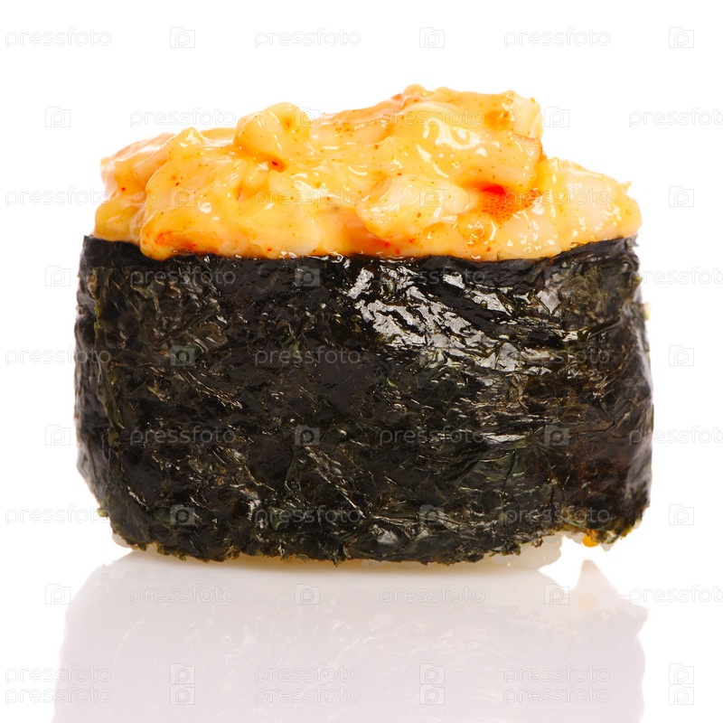Пряные суши на белом фоне