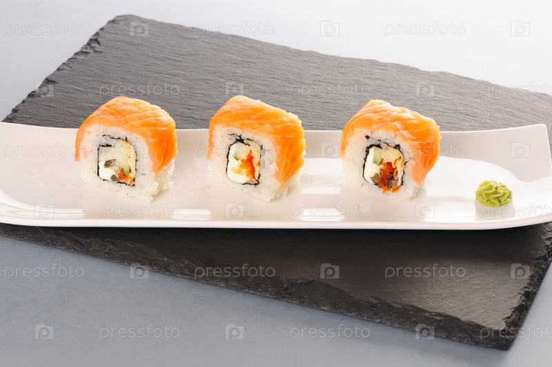 Суши роллы на тарелке