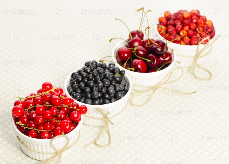Дикие ягоды - черника, красная смородина, клубника, земляника