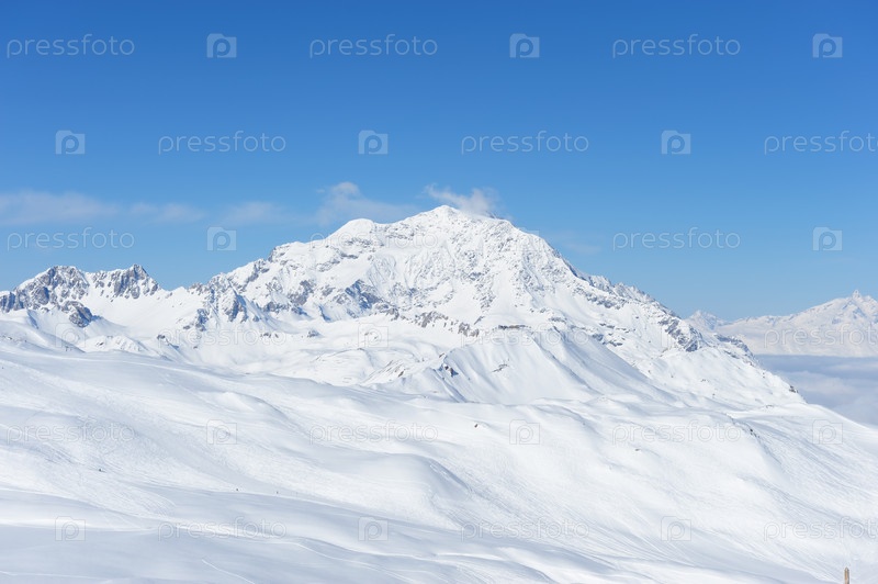 Горы в снегу зимой, Валь-д'Изер, Альпы, Франция