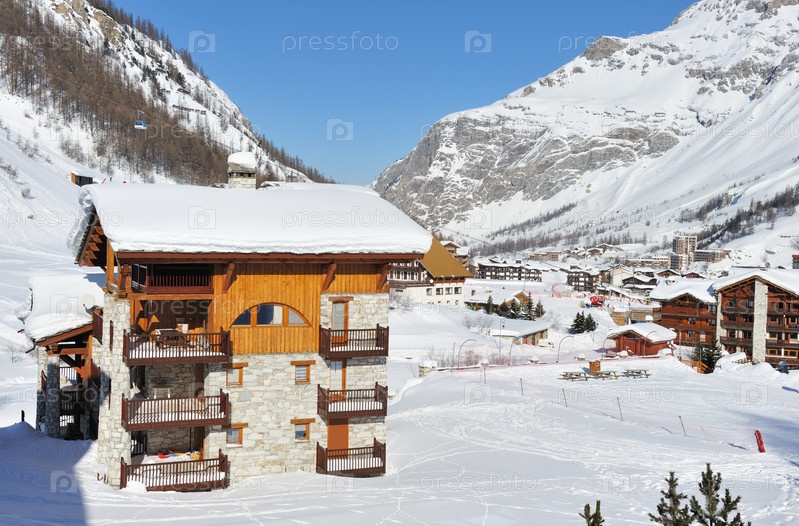 Горнолыжный курорт снежной зимой, Валь-д'Изер, Альпы, Франция