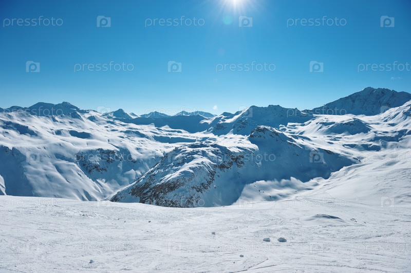Горы в снегу зимой, Валь-д'Изер, Альпы, Франция