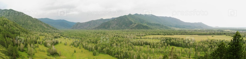 Панорама горной местности в Горном Алтае. Уймонская долина