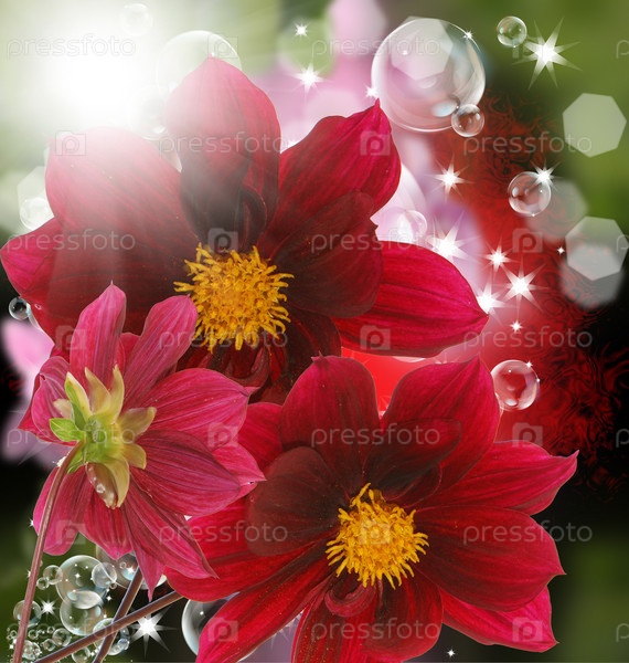 Декоративные садовые цветы на абстрактном фоне. Георгины