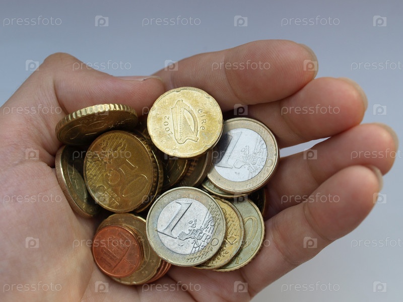 Рука держит монеты евро