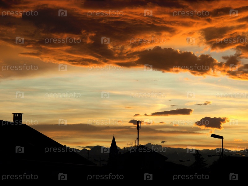 Город на фоне заката