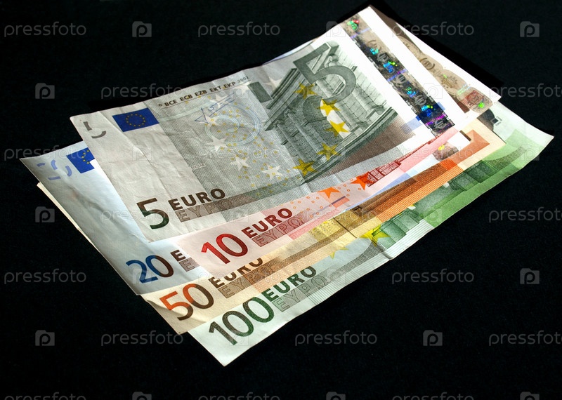 Банкноты евро, выборочный фокус