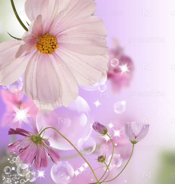 Декоративные садовые цветы на абстрактном фоне