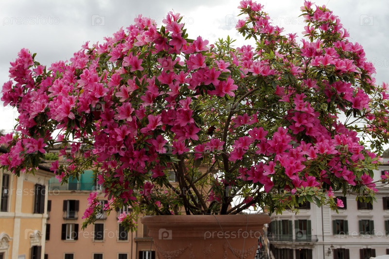 Цветущая азалия на испанской лестнице в Риме