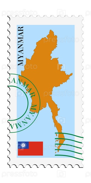 Почтовая марка с картой Мьянмы