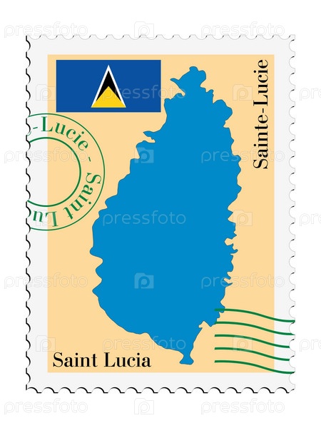 Почтовая марка с картой Сент-Люсии