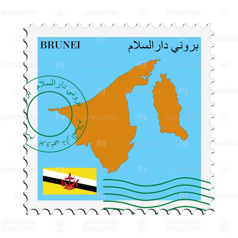 Почтовая марка с картой Брунея