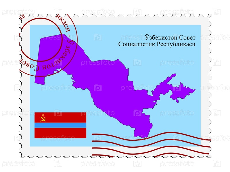 Почтовая марка с картой Узбекской ССР