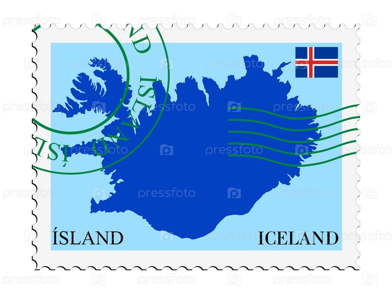 Марка с картой Исландии