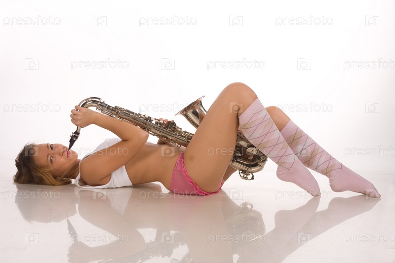 Портрет красивой девушки с саксофоном