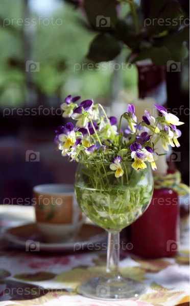Букет фиалок в стакане