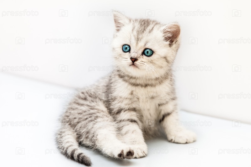 Маленький британский серебристый котенок с голубыми глазами