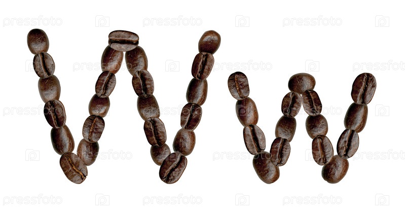 Буквы W из кофейных зерен. иллюстрация на белом фоне