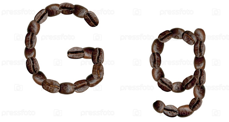 Буквы G из кофейных зерен. иллюстрация на белом фоне