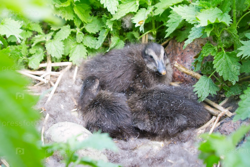 Птенцы обыкновенной гаги в гнезде. Финский залив, остров Нерва