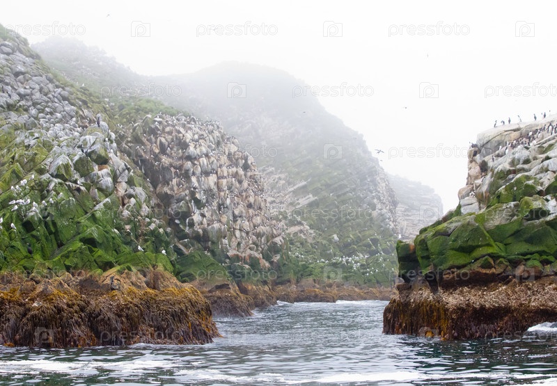 Прибрежные скалы во время отлива в тумане