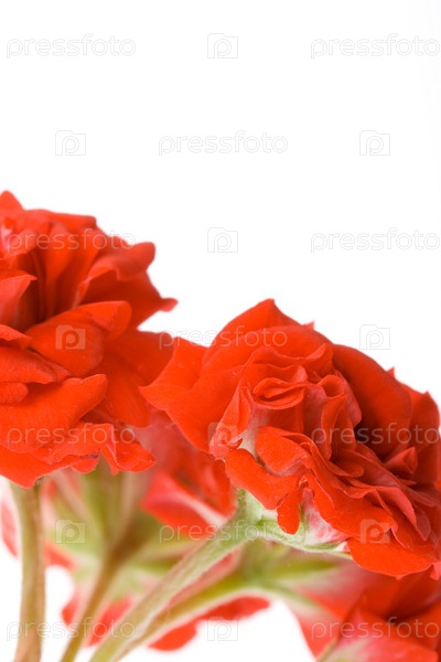 Красные цветы герани на белом фоне