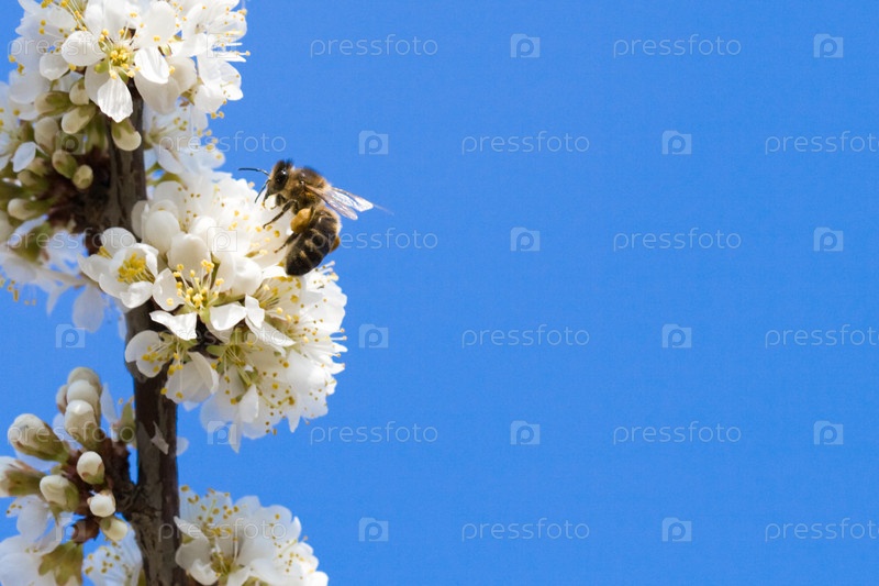 Пчела на цветущей яблоне
