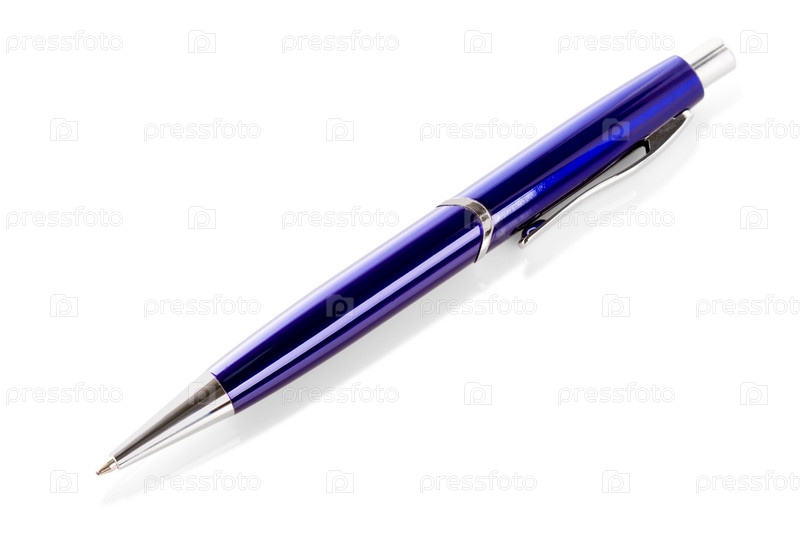Синяя металлическая ручка на белом фоне с тенью