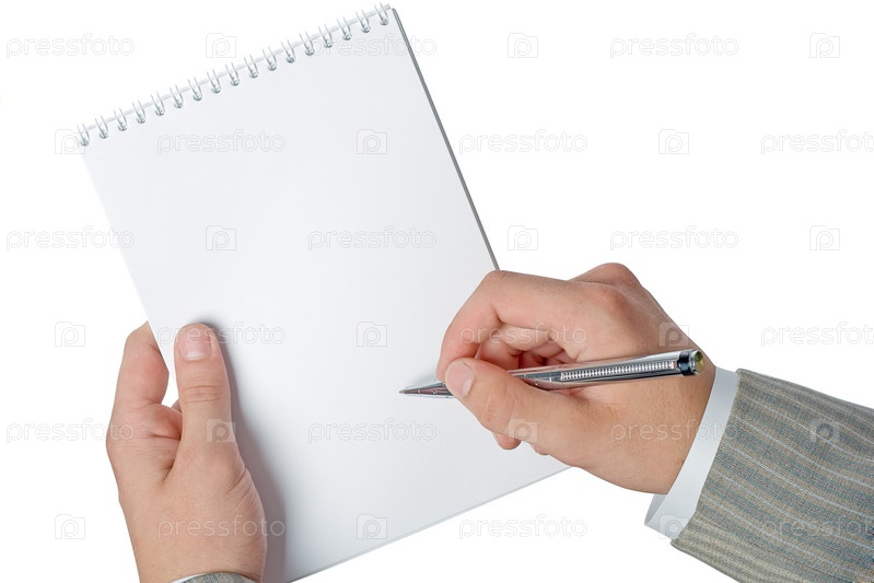 Чистый блокнот и ручка в руках бизнесмена
