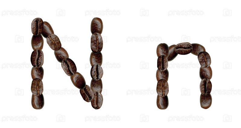 Буквы N из кофейных зерен. иллюстрация на белом фоне