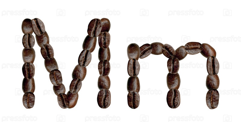 Буквы M из кофейных зерен. иллюстрация на белом фоне