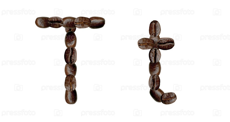 Буква 'T' из кофейных зерен. иллюстрация на белом фоне