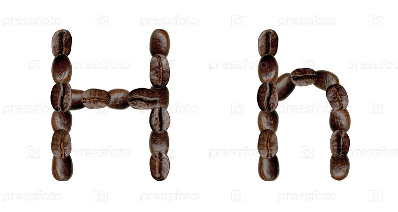 Буква 'H' из кофейных зерен. иллюстрация на белом фоне