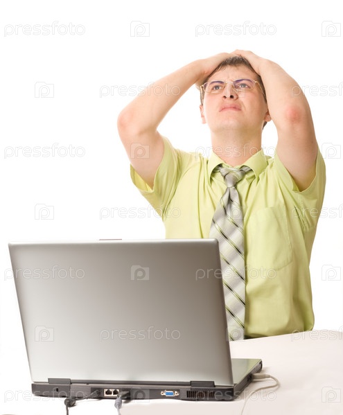 Расстроенный бизнесмен на белом фоне