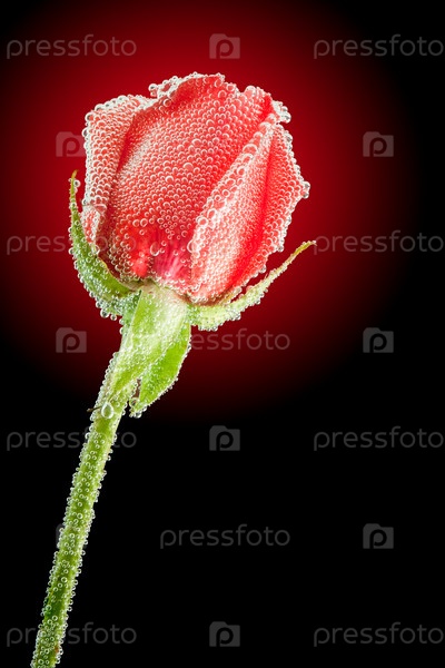 Красная роза с пузырьками под водой